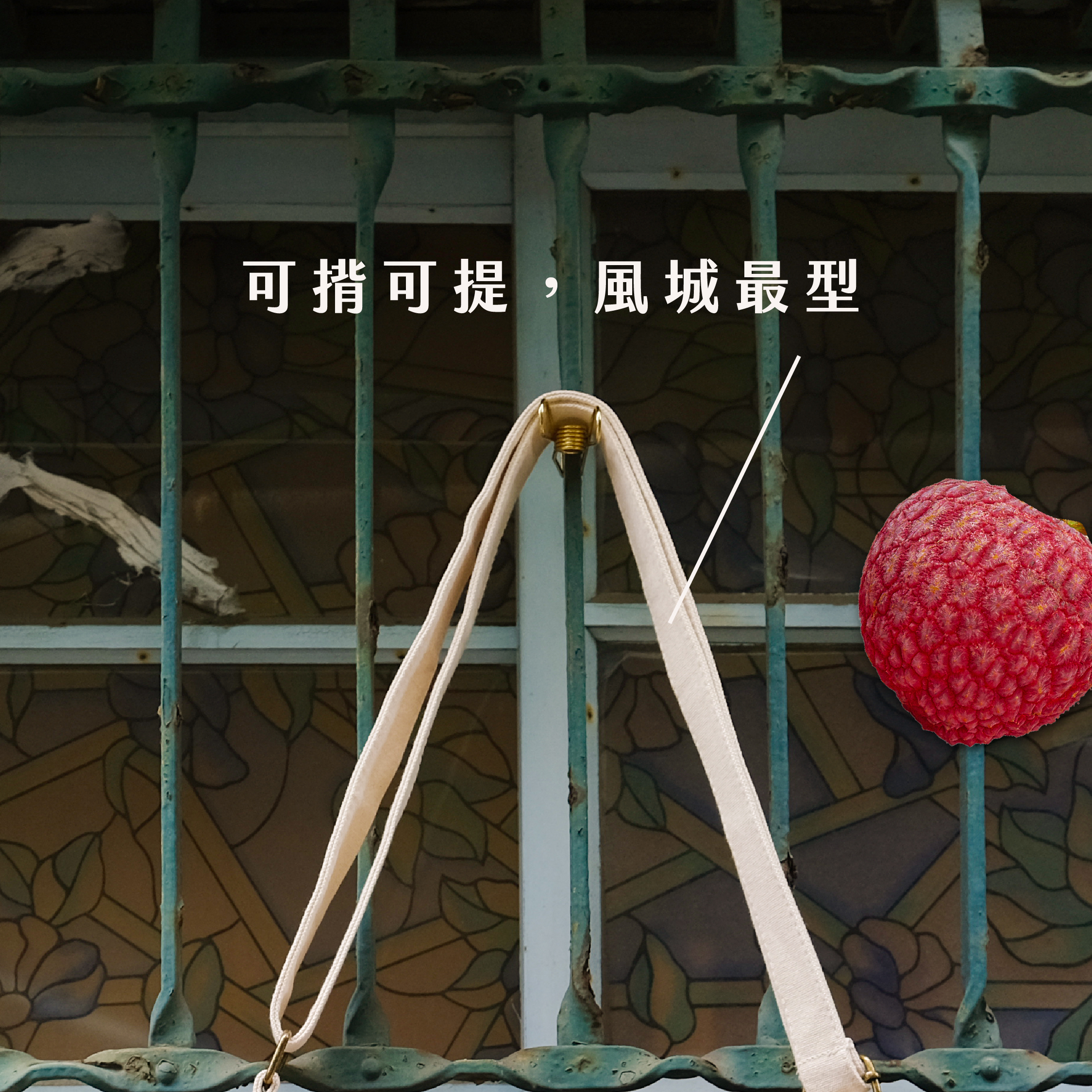 「荔不從心」帆布袋,以新竹香山特產的荔枝為代表,